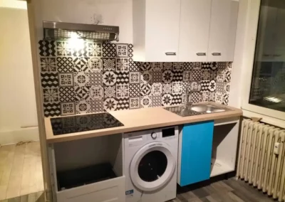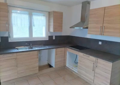 Conception, pose des meubles, installation des plans de travail et finitions précises pour une cuisine sur mesure.